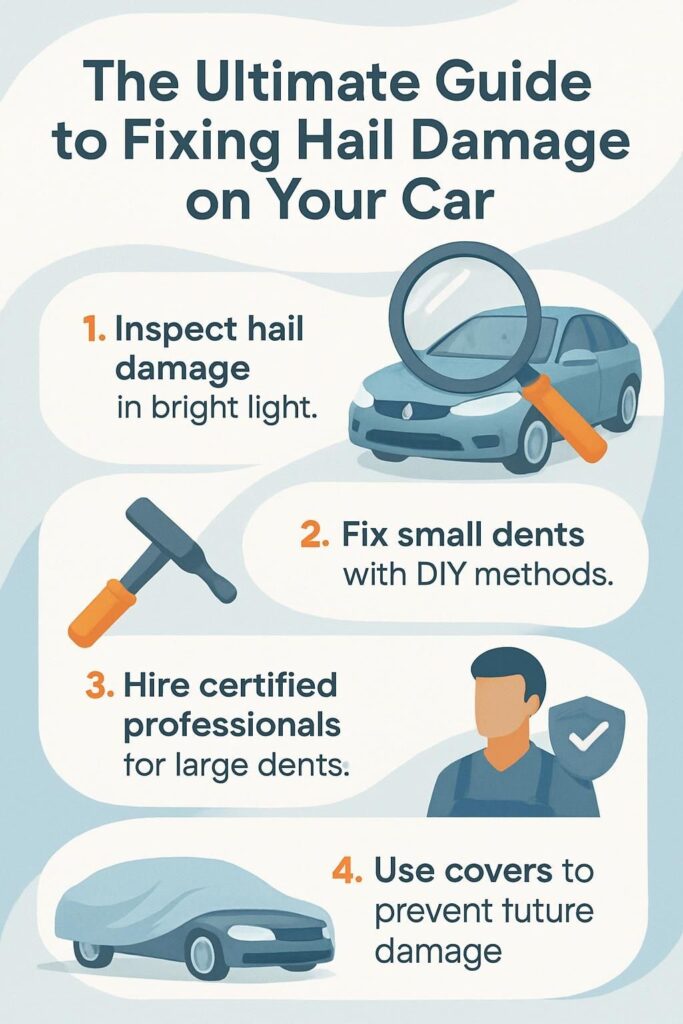 Tips for Preventing Future Hail Damage: You can protect your car by using a hail protection cover or parking it in a garage during storms. Want to learn more ways to keep your vehicle safe?